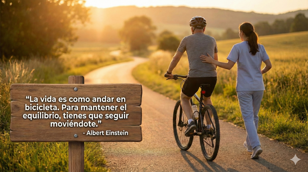 Recordemos que el “movimiento” al que se refiere Einstein también incluye la adaptabilidad. Nuestro cuerpo es un sistema complejo. Requiere de atención y cuidado constante. Un programa de ejercicio terapéutico adaptado puede ser la clave. Te ayudará a fortalecer tu centro y a mantener una postura correcta. Esto es vital para un pedaleo constante y sin esfuerzo.